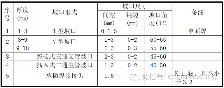 管道焊接坡口形式坡口尺寸一览表 6-2