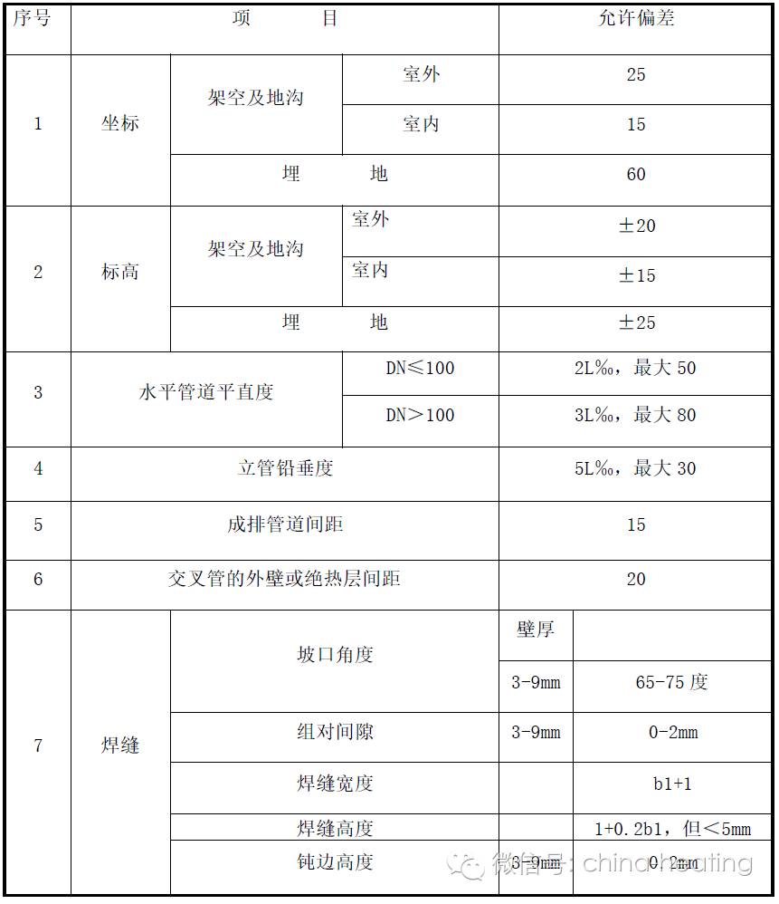 (三)质量控制标准 管道安装的允许偏差(mm)