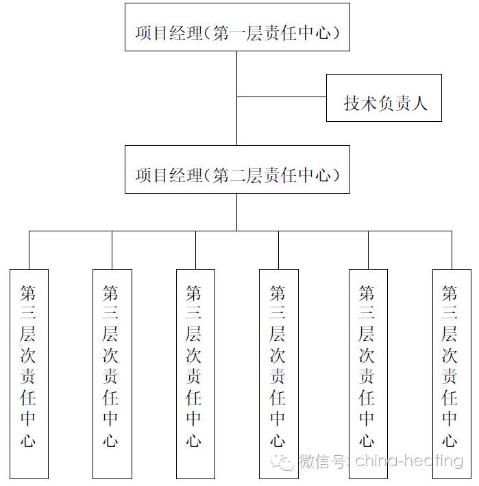 1、成立成本控制组织系统 本工程拟建立项目经理领导下的工程成本控制体系,建立各级成本控制中心(参见下图),委派专职会计师负责对工程成本控制体系的运行进行检查和监督,下达内部控制指标,定期提供成本分析统计表,以推动成本控制体系的正常运转,确保最终报价建立在科学的依据上。