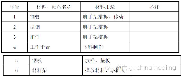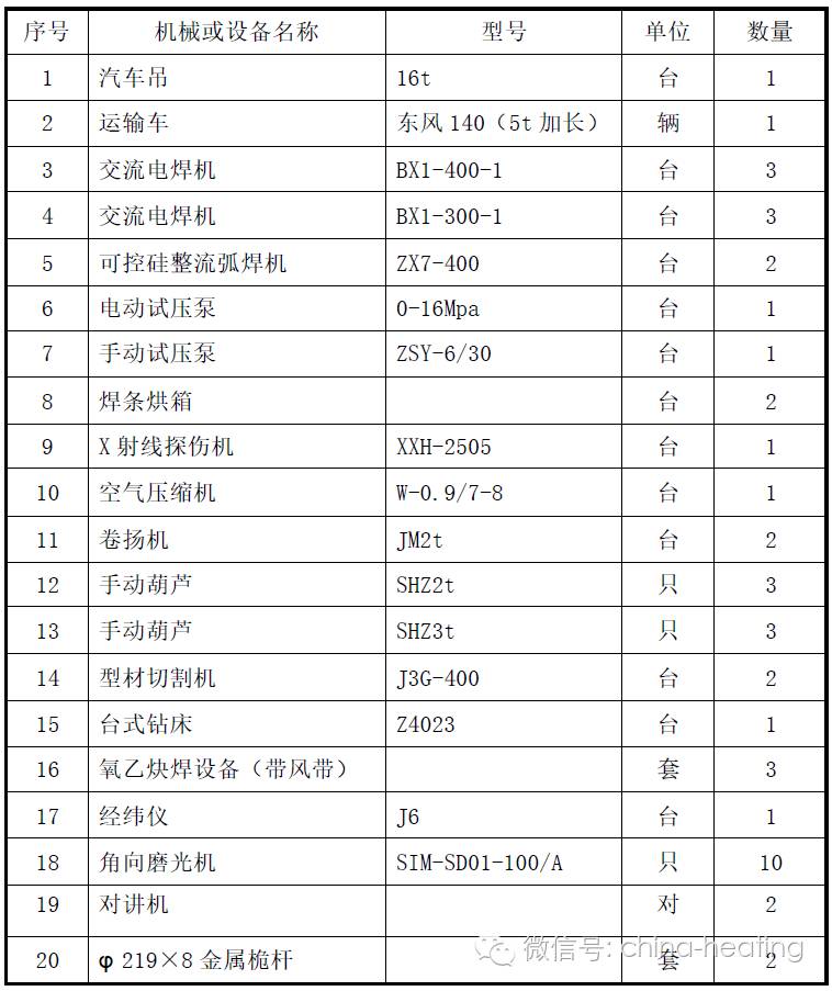 ㈣施工设备、机具配备 本安装工程施工用设备机具详见“主要施工机械和工具表”。